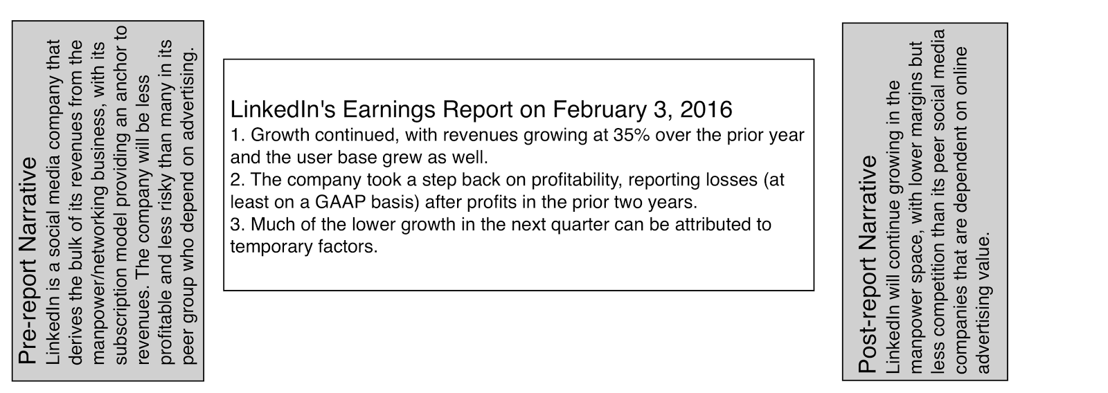 While it often lumped up with other social media companies, Linkedin is different at two levels. The first is that it is less dependent on advertising revenues than other social media companies, deriving almost 80% of its revenues from premium subscriptions that it sells its customers and from matching people up to jobs. The second is that its pathway to profitability has been both less steep and speedier than the other social media companies, with the company reporting profits (GAAP) in both 2013 and 2014, though they did lose money in 2015.