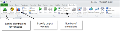I normally don't make plugs for products and services, even if I like them, on my posts, because I am sure that you get inundated with commercial offerings that show up insidiously in Facebook and blog posts. I am going to make an exception and praise Crystal Ball, the Excel add-on that I use for simulations. It is an Oracle product and you can get a trial version by going here. (Just to be clear, I pay for my version of Crystal Ball and have no official connections to Oracle.) I like it simply because it is unobtrusive, adding a menu item to my Excel toolbar, and has an extremely easy learning curve.