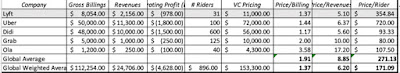 - Second, this table suggests to me that Uber is a company that is poised on a knife's edge. If it just continues to just add to its rider count, but pushes up its cost of acquiring riders as it goes along, and existing riders do not increase the usage of the service, its value implodes. If it can get riders to significantly increase usage (either in the form of more rides or other add on services), it can find a way to justify a value that exceeds $100 billion.